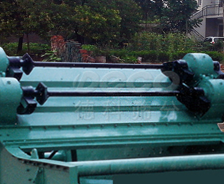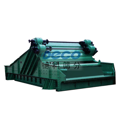 德科熱礦篩雙軸振動器兩根軸由兩臺電動機分別帶動做反向自同步旋轉,使篩箱產生直線振動。電動機安裝在篩箱側面的固定支架上,故電動機不參振。電動機和雙軸振動器之間,兩臺雙軸振動器之間均采用萬向聯軸器連接,萬向聯軸器同時具有角度和長度的補償作用,可以滿足篩機工作時電動機和振動器之間的相對位移要求。
